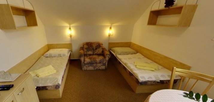 Pokoje jsou standardně vybaveny s vlastním soc. zařízením (WC,vana, umyvadlo), TV. Součástí pensionu je restaurace s barem a TV s možností celodenního stravování (snídaně, polopenze, plná penze, minutky speciality, hotová jídla).