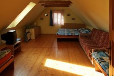 Jsou zde k dispozici 4 ložnice (2x dvoulůžkový pokoj, 2x čtyřlůžkový pokoj). Dále 3x sociální zařízení s toaletou a sprchovým koutem (2x bojler 120l). Stravovat se můžete v plně vybavené kuchyni (eletrická varná deska, 2x lednice s mrazáčkem, mikrovlnná trouba, přenosná trouba, rychlovarná konvice a nádobí). Vytápění je možné el. přímotopy ve 4 - lůžkové ložnici dřevem.