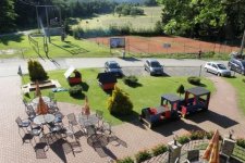 K dispozici je pro naše hosty úschovna jízdních kol a lyží  (možnost zapůjčení horských kol). Nachází se zde 2 tenisové kurty, hřiště pro volejbal a nohejbal, sauna s bazénkem, fitko, masérna a kosmetika!!! V protozu je rovněž vyhřívaný krytý bazén. Poskytujeme masáže.