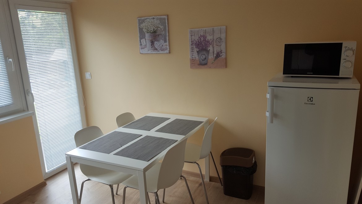 Apartmá Andělka je nově zrekonstruované ubytování v 1. patře domu, vhodné pro 2–4 osoby (ideálně rodinu s dětmi). K dispozici je ložnice s manželskou postelí, samostatné lůžko s přistýlkou, kuchyňka (mikrovlnka, varná deska, lednice, myčka, varná konvice, nádobí), koupelna s vanou a WC, TV, Wi-Fi a plynové vytápění. Hosté mohou využít posezení na balkoně nebo terase, parkování v oplocené zahradě. Kouření je povoleno pouze venku nebo na balkoně. Domácí mazlíčci jsou vítáni po dohodě a za poplatek.