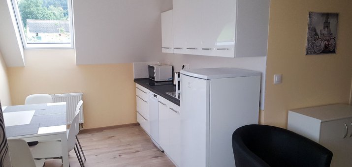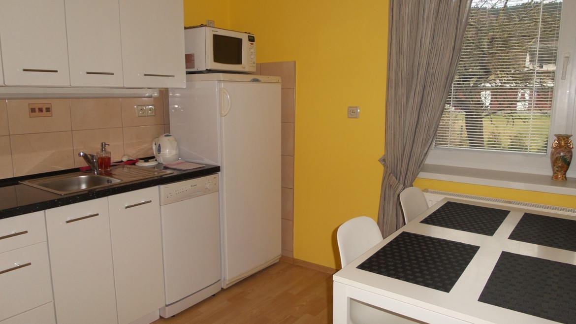 Apartmá Helga se nachází v 1. patře domu a je ideální pro 2 osoby. Nabízí ložnici s manželskou postelí, kuchyňský kout (mikrovlnka, varná deska, lednice, myčka, varná konvice, nádobí), koupelnu s vanou a WC, TV, Wi-Fi a plynové vytápění. K dispozici je také balkon nebo terasa k posezení, parkování v oplocené zahradě. Apartmán je nekuřácký, kouření je možné na balkoně nebo venku. Po dohodě lze ubytovat i domácí zvíře za poplatek.