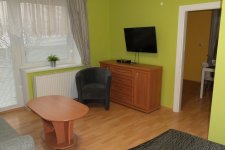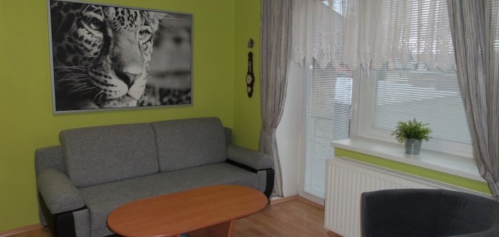 Apartmá Petra se nachází v přízemí rodinného domu a nabízí ubytování až pro 4 osoby. K dispozici jsou dvě ložnice – jedna s manželskou postelí, druhá se dvěma lůžky, které lze spojit. Součástí apartmánu je plně vybavená kuchyň (mikrovlnka, sklokeramická deska, lednice, myčka, varná konvice, nádobí), koupelna s vanou, samostatné WC, předsíň se sedačkou a dvě TV se satelitními programy. Nechybí Wi-Fi připojení, plynové topení, základní hygienické potřeby a možnost vstupu do oplocené zahrady s posezením na balkoně. Parkování je zajištěno u domu. Apartmán je nekuřácký, kouření je povoleno venku nebo na balkoně.