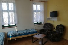 • Ubytovna – v turistické ubytovně najdete šest třílůžkových pokojů, společenskou místnost s kuchyňským koutem. Pánské a dámské toalety a sprchy jsou situovány na chodbě a jsou společné pro všechny pokoje.