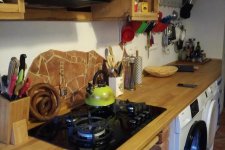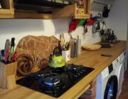 Apartmán má dva oddělené pokoje, se vstupem do společné kuchyně. Koupelna se sprchovým koutem, toaletou a bidetem. Jsme připraveni také pro nejmenší hosty - jídelní set, skládací postýlka a dřevěná jídelní židle, kterou lze přeměnit na stolek s židličkou . Pro domácí mazlíčky máme připravený proutěný pelíšek a misky .