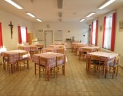 Snídaně, obědy, večeře nebo vlastní strava (mini kuchyňka), pronájem kuchyně/den 800,- Kč. Poloviční porce za 70% ceny.