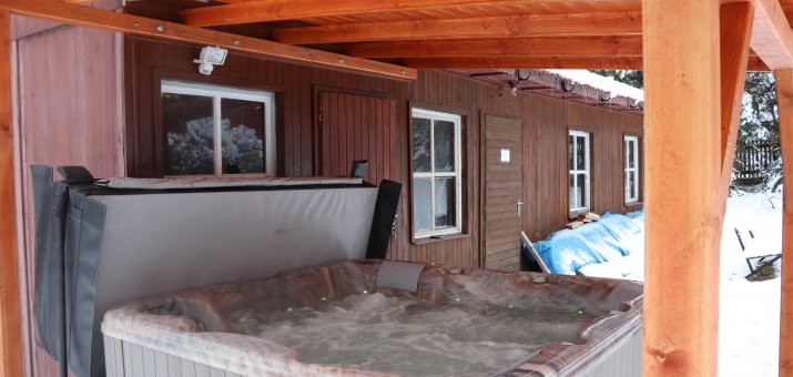 Prostorný areál u lesa. O prázdniných bazén, trampolína, ohniště, skuzavky, houpačky, venkovní vířivka celoročně.