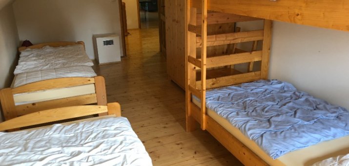 Hosté se mohou ubytovat ve dvou dvoulůžkových pokojích a dvou čtyřlůžkových pokojích se společným sociálním zařízením (2 koupelny, 2 WC). Ubytovaní si  mohou vařit ve společné kuchyňce (lednička, myčka, mikrovlná trouba, el. trouba, sklokeramická deska, varná konvice, překapávač na kávu, sendvičovač).