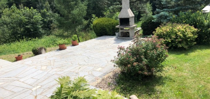 Zahrada: otevřený pozemek (louka) 2 500 m2, parkoviště na pozemku otevřené (počet míst: 2),1x krb v domě (v obývacím pokoji), 1x venkovní krb